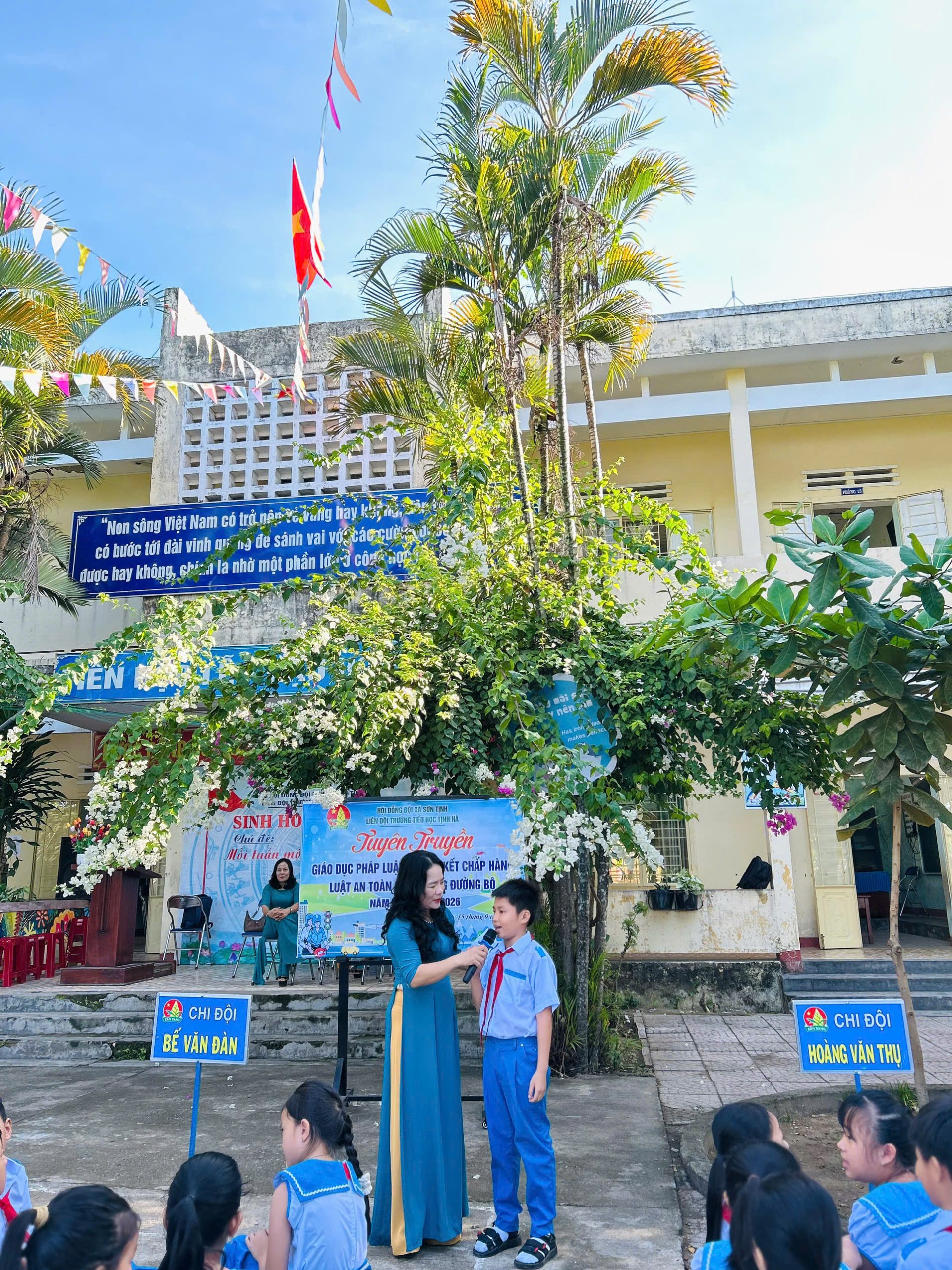 Nhằm giúp góp phần mang lại sự an toàn khi tham gia giao thông cho các em học sinh và xây dựng ý thức chấp hành luật giao thông, hình thành những thói quen tốt cho các em học sinh ngay từ khi còn nhỏ. Sáng nay, Liên đội Trường Tiểu học Tịnh Hà đã tổ chức tuyên truyền “Giáo dục pháp luật và cam kết chấp hành Luật gia thông đường bộ năm học 2025-2026”. Với phương châm “An toàn giao thông vì nụ cười trẻ thơ, nhà trường đã hướng dẫn các em một số nội dung: Những điều cần biết khi đi bộ trên đường – đi bộ an toàn, những lưu ý đối với những bạn đi bằng xe đạp đến trường và những điều cần quan tâm đối với những bạn được bố mẹ đưa đến trường bằng xe máy, xe đạp điện.