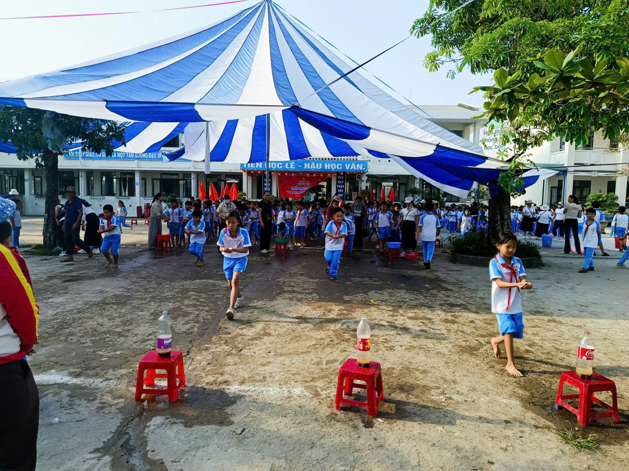 Ngày hội được tổ chức với nhiều trò chơi vui nhộn như bụm nước vào chai, kéo co, nhảy dây, kẹp bóng… đã thu hút đông đảo học sinh tham gia.