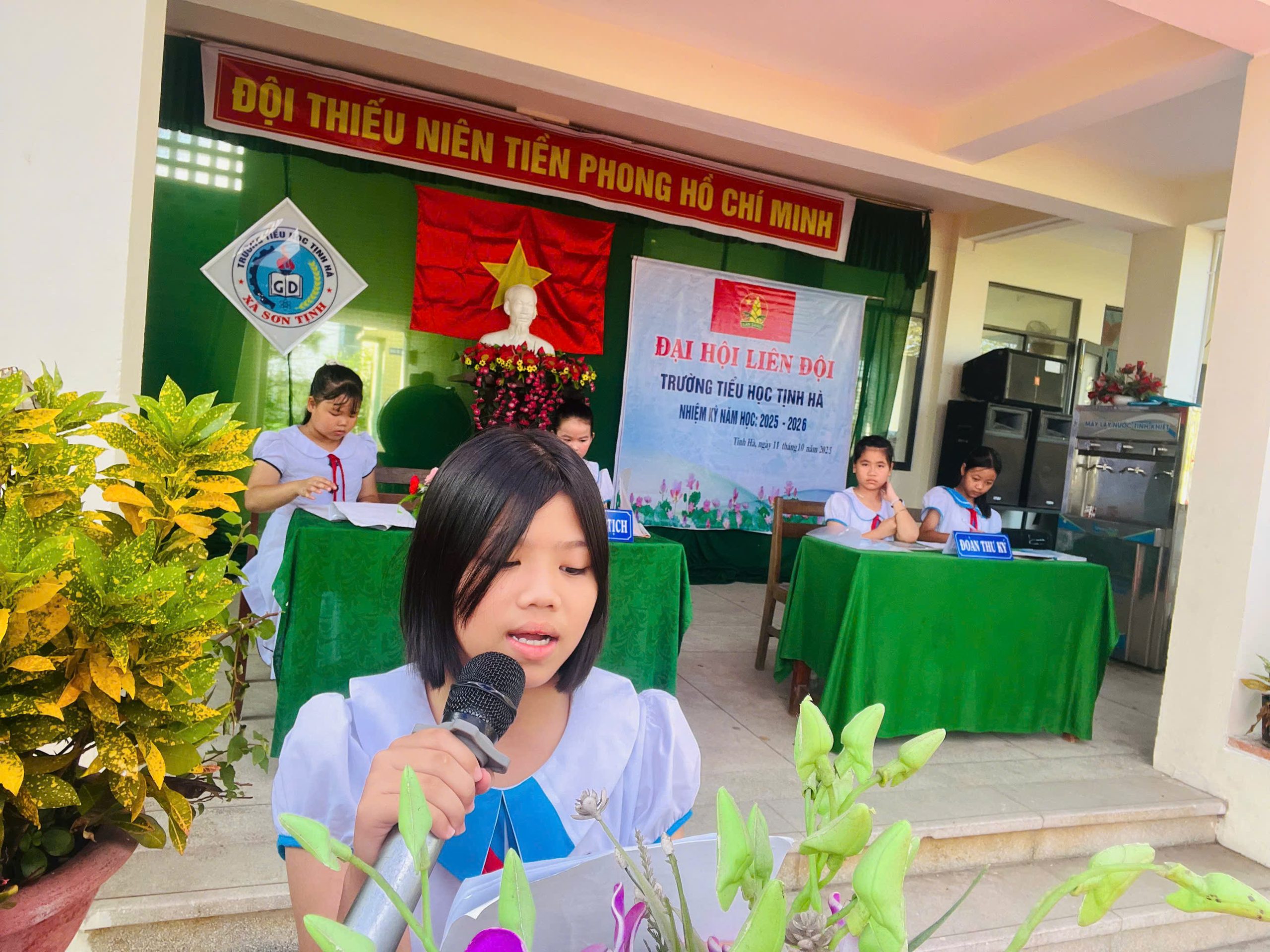 Thực hiện chương trình công tác Đội và phong trào thiếu nhi năm học 2025 – 2026, thực hiện sự chỉ đạo của Hội đồng đội xã Sơn Tịnh và được sự nhất trí của Chi bộ, Ban lãnh đạo nhà trường. Sáng ngày 11 tháng 10 năm 2025, Liên đội trường Tiểu học Tịnh Hà đã long trọng tổ chức Đại hội Liên đội nhằm đánh giá những kết quả đã đạt được trong nhiệm kỳ năm học 2024 – 2025 và đề ra phương hướng nhiệm vụ nhiệm kỳ năm học 2025- 2026.